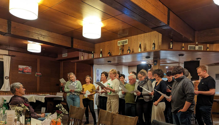 Im April haben wir nun unseren Saisonabschluss im Solino gefeiert. Es war ein sehr schöner Abend. Leider hatten wir nicht nur zu feiern. Wir mussten uns schweren Herzens von „unserem lieben Klaus“ verabschieden, der nach über 40 Jahren jetzt in den Theaterruhestand geht. Ihm zu Ehren haben wir ein Ständchen gesungen.